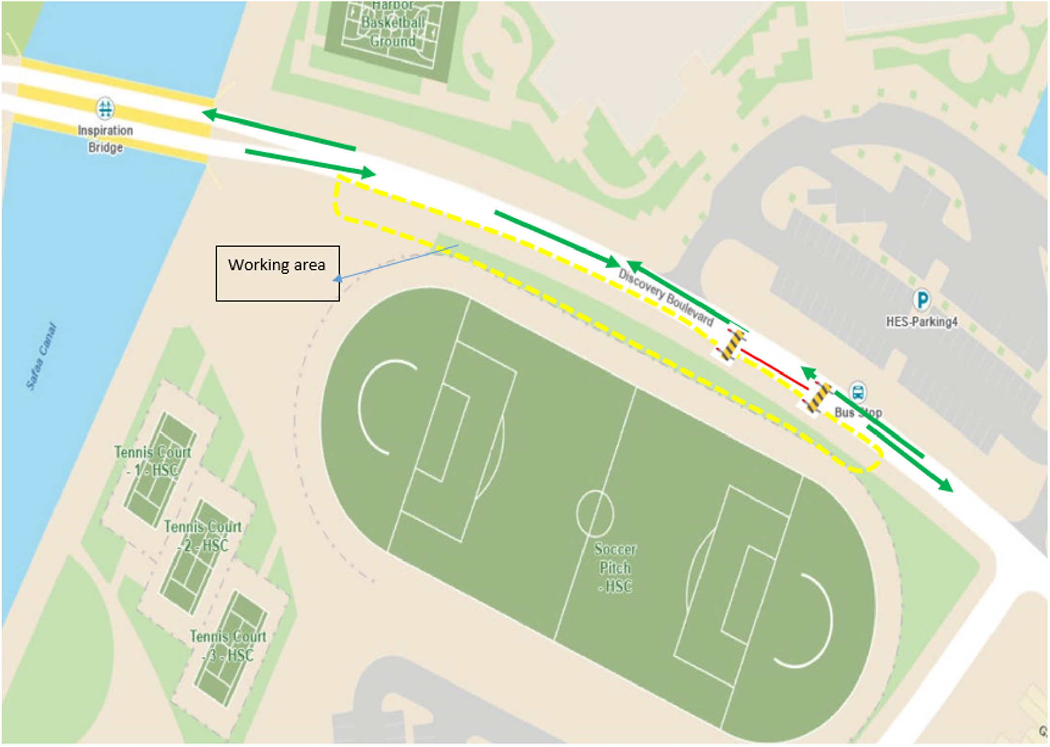 Please note that a section of Discovery Boulevard Road, along with the HSC Soccer Pitch, will be partially closed from Sept 28 to Oct 27, 2025, due to construction work.