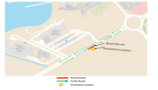 Please note that a section of Achievement Road near the fire hydrant opposite to Saudi Aramco building will be partially closed from October 26 to November 6 due to maintenance and repair work.