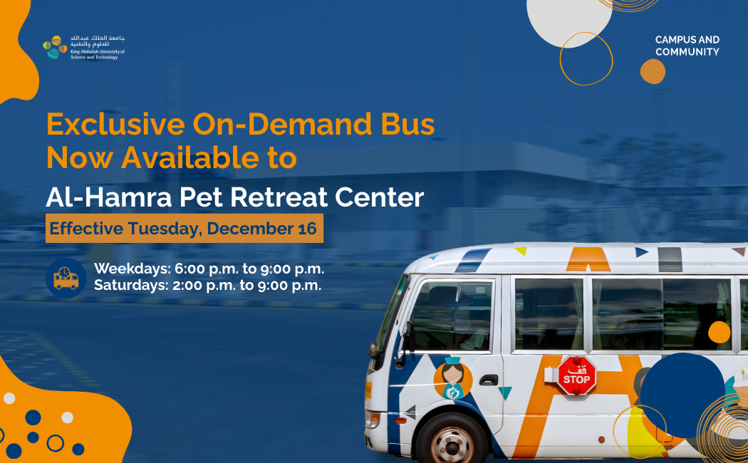 Campus and Community (C&C) is pleased to introduce a new exclusive on-demand bus service to the Al-Hamra Pet Retreat Center, starting Tuesday, December 15, 2025.