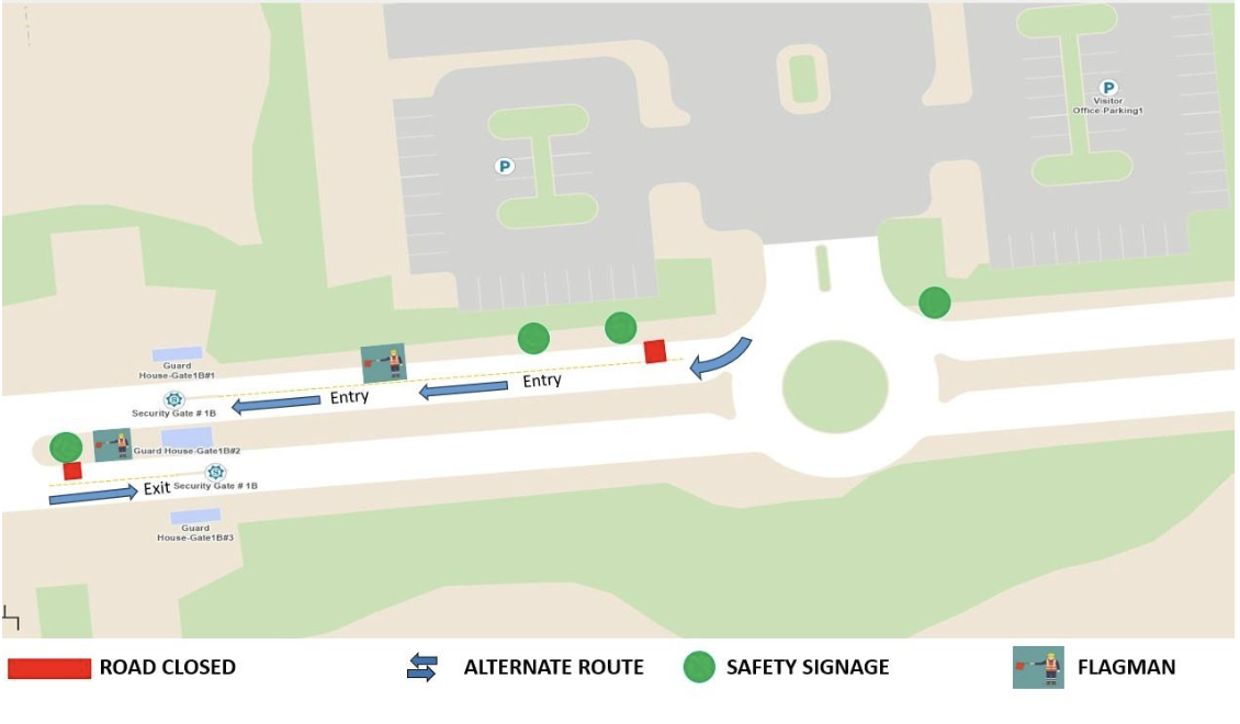 Please be advised that Gate 1B will operate with a single lane from December 18 to January 14, 2026 between 7:00 PM and 6:00 AM, Entry and exit will be managed alternately during this period.
