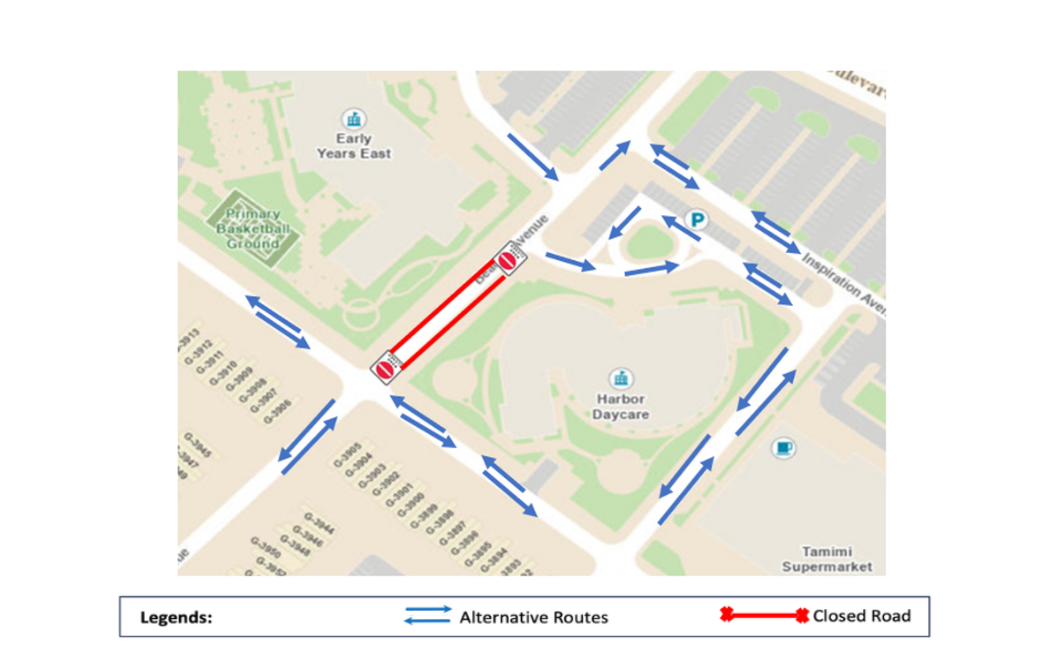 Please note that the Section of Beacon Avenue (Black Iris) Road intersection with Discovery Boulevard near Early Years East School will be fully closed from January 16, 2026, to Feb 28, 2026, due to construction & repair works.