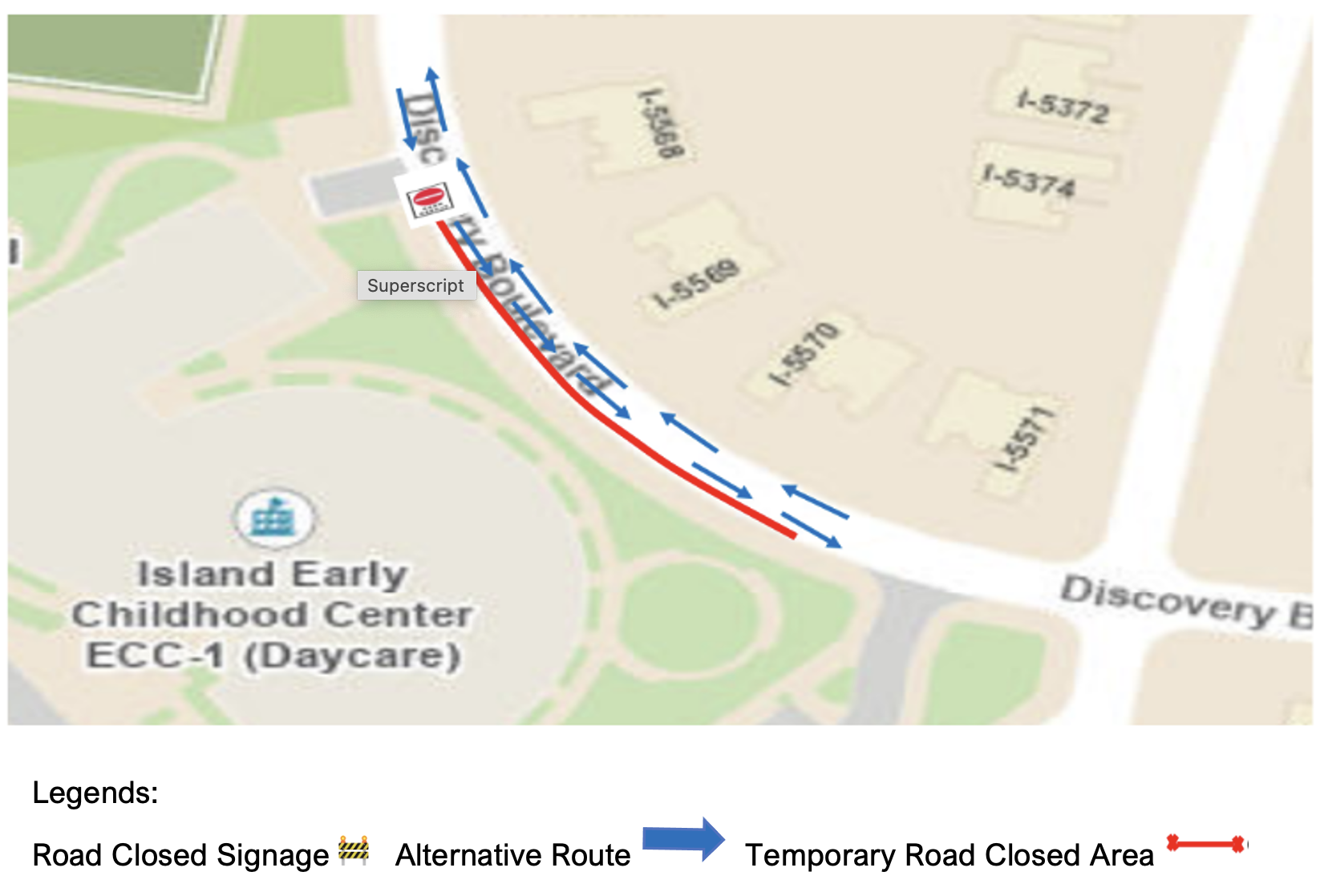 Please note that the Section of Discovery Boulevard, along with ECC-1, will be partially closed from February 25, 2026, to March 03, 2026, due to construction & repair works.