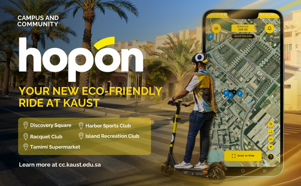 Campus and Community (C&C) is thrilled to announce that hopOn is now available at KAUST! This innovative mobility service offers convenient, safe, and sustainable transportation options across campus, making it easier for students, faculty, staff, and residents to get around.