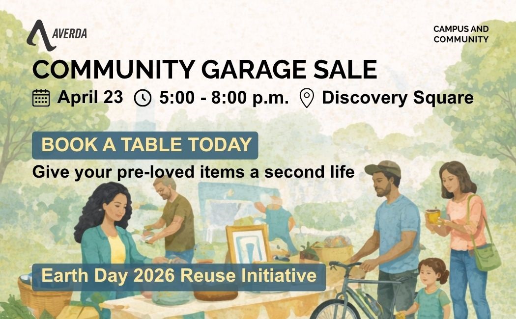 Join us for the Community Garage Sale at Discovery Square on Thursday, April 23, from 5:00 p.m. to 8:00 p.m.